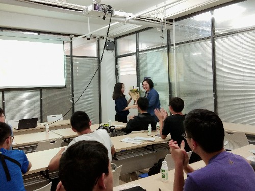 接着,由余小凡同学代表全班同学为同样身为人母的班主任老师献上精心准备的康乃馨花束,传达同学们的美好祝福。班主任翟老师在对同学们表示感谢的同时,亦对本次班会表示肯定,并表示将尽自己的力量在各个方面帮助电子1801班。