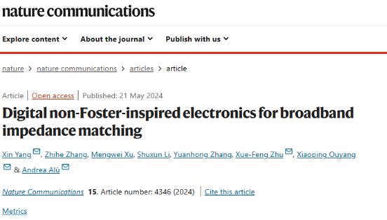 该研究成果以“Digital non-Foster-inspired electronics for broadband impedance matching”为题,于5月21日发表在Nature Communications上。杨鑫教授和张智贺博士是该论文的共同第一作者,工口漫画