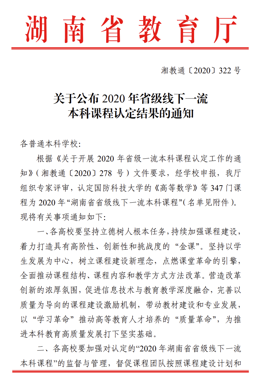 [2] 获湖南省一流线下课程1门